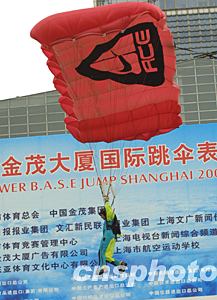 世界頂級高樓跳傘運動員如雄鷹展翅般從中華第一高樓上海金茂大廈的八十八層平臺縱身飛躍,驟然降落,那一朵朵色彩紛呈的傘花飄逸而下,博得在場觀眾的陣陣喝彩。今日有著“中華第一跳”美稱的上海金茂大廈高樓跳傘著實讓一向見多識廣的申城市民大開眼界,隨著跳傘表演的如期舉行,一切相關的懸念也隨之揭開了神秘的面紗。