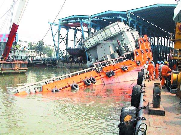 根據(jù)船舶資料顯示,該船空船重量達(dá)到1120噸,因?yàn)槌翛](méi)在珠江內(nèi)河,大型打撈船舶設(shè)備無(wú)法進(jìn)入,給打撈工作造成很大困難。根據(jù)可用的船舶設(shè)備情況,打撈局采用穩(wěn)定難船、封艙抽水、使難船自浮的整體打撈方案。首先用300噸浮吊及潛水作業(yè)母船穩(wěn)定住沉船浮態(tài),對(duì)其進(jìn)行必要的加固,防止其繼續(xù)下滑和左傾加大;慢慢移開(kāi)左舷的浮船塢,然后水下封堵有關(guān)的孔蓋、海底閥及主甲板上的工藝開(kāi)口,然后用潛水泵抽出船內(nèi)積水,使難船自浮,調(diào)整浮態(tài),現(xiàn)場(chǎng)交船。(幸琦昕許力夫張健文)