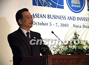 首屆東盟商業與投資峰會十月七日在印尼巴厘島舉行,中國國務院總理溫家寶出席會議并發表題為《中國的發展和亞洲的振興》的演講,來自中國、東盟以及世界其他地區的三百多名企業家聽取了演講。中新社記者:齊彬