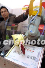 首屆中國租賃業(yè)推廣展覽會八日在北京展覽館拉開序幕,來自國內(nèi)外四十八家企業(yè)及制造商云集一堂。北京一家科技有限公司推出可以寫字、拍照、搖獎的智能機器人租賃業(yè)務,每日三千元的租賃價格吸引了不少參觀人員。中新社記者:廖文靜