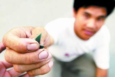 曾先生說,他在驚嚇過后才覺得全身麻痛,仔細檢查才發現自己多處掛彩。一些小碎片嵌進肌肉里,身上綻開多道血痕。他從右腿傷口拔出一塊指甲蓋大小的硬質墨綠色碎片,告訴記者這就是爆炸的不明物體。