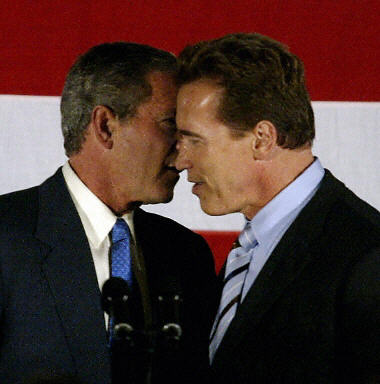 中新網10月17日電 美國總統布什16日前往加利福尼亞,與剛剛在州長競選中勝出的阿諾·施瓦辛格會面,希望阿諾的人氣為他拉升明年總統大選的選情。