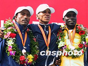肯尼亞選手約翰遜·切洛諾和埃塞俄比亞選手阿謝拜爾·迪邁斯分別以二小時十四分及二小時十四分零三秒的成績獲得男子組比賽的第二名和第三名。
