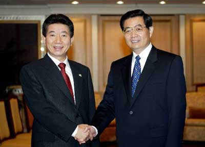 中新網10月20日電 新華網報道說,中國國家主席胡錦濤19日在曼谷會見了韓國總統盧武鉉。