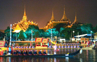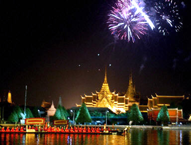 為歡迎參加apec峰會的21國領導人,泰國首都曼谷進行煙花、游船等一系列文化展覽活動。20日晚,泰國國王普密蓬·阿杜德及王后設宴款待各國首腦,并邀請他們乘坐皇家游艇順湄南河一覽風光。