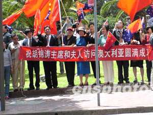 到機場歡迎胡錦濤主席的還有聯邦和新州官員、華人華僑、中資機構負責人、中國留學生代表和中國使領館工作人員。