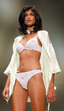 10月22日,在德國的杜塞爾多夫舉行的2004春夏時裝內衣展上,模特現場展示了C&A品牌的新款內衣。