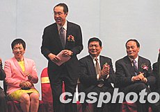 第七屆北京·香港經濟合作研討洽談會二十三日在北京飯店舉行開幕儀式,香港特別行政區政府財政司司長唐英年(左二)致辭表示:北京與香港通過CEPA的合作將使雙方呈現“雙龍出海”之勢。中新社記者:廖文靜