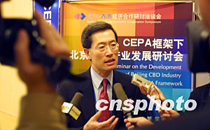 CEPA框架下北京CBD產業(yè)發(fā)展研討會二十四日在北京飯店召開,香港貿易發(fā)展局基建業(yè)發(fā)展咨詢委員會主席劉炳章在會后表示:北京CBD的發(fā)展應吸取香港中環(huán)商業(yè)區(qū)的經驗教訓,作好策略性規(guī)劃,協調商業(yè)用地與公共空間的均衡發(fā)展。中新社記者:廖文靜