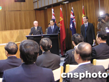 中國國家主席胡錦濤和澳大利亞總理霍華德10月24日在聯邦大廈聯合會見中澳記者。作者:劉雨生