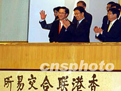十月二十八日,上海市市長(zhǎng)韓正(中)參觀香港交易所。中新社記者:潘索菲