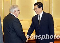 胡錦濤晤基辛格 強調落實兩國領導人達成的共識