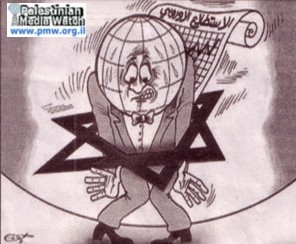 中新網11月12日電 據世界網絡日報11日報道,巴勒斯坦官方日報《Al Hayat Al Jadida》近日登出了一張漫畫,描述猶太人是世界和平的一大威脅。這張漫畫援引此前歐洲范圍內進行的一項民意調查,該調查顯示將近60%的歐洲人認為以色列是當今世界和平的最大威脅。