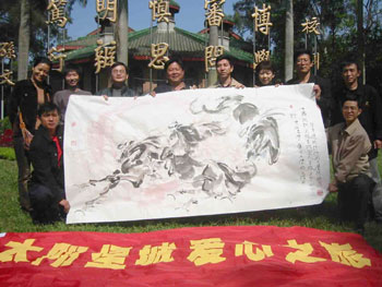 富明慧接受太陽星城愛心之旅贈畫(華夏時報圖,太陽星城愛心之旅特派記者 大漠/攝)