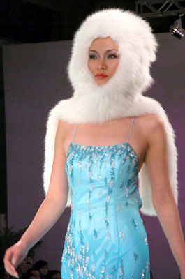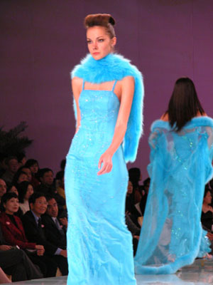 中國國際時裝周NE·TIGER 2003/2004高級皮草晚裝,個性奢華寶藍(lán)系列。