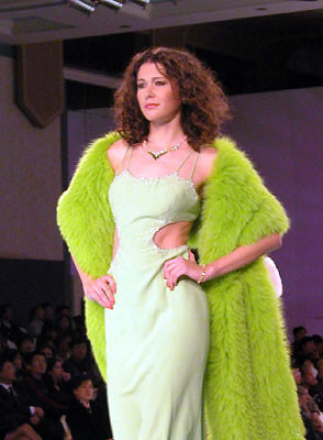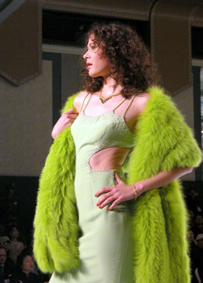 中國國際時裝周NE·TIGER 2003/2004高級皮草晚裝,湖水綠個性色系列。