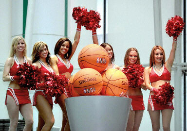 火箭啦啦隊的“辣妹”們11月25日在紅牛飲料北京簽約式上表演。紅牛飲料在中國成為NBA官方指定飲料。