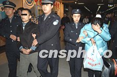 十二月八日清晨,北京東城警方將持槍入室搶劫達(dá)二十一萬元人民幣的犯罪嫌疑人蔡某(男)及同案犯押解回京。此案正在進(jìn)一步審理中。中新社記者:任海霞