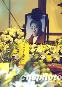 柯受良家屬在上海龍華寺三圣殿為柯受良舉行法事超度儀式,圈中好友曾志偉、韓紅等陸續(xù)來到現(xiàn)場祭奠。中新社記者:湯彥俊