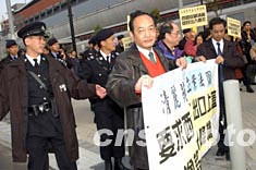 香港九廣西鐵12月20日正式通車,有團(tuán)體在啟用儀式會場拉起橫幅要求九廣西鐵增加設(shè)施方便市民出入。中新社記者:洪少葵
