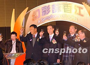香港特別行政區財政司司長唐英年、國家旅游局局長何光偉等十二月二十日晚出席香港“幻彩詠香江”啟動儀式。中新社記者:錢興強