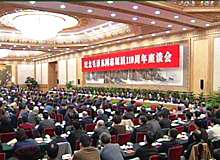 中新社北京十二月二十六日電 中共中央二十六日上午在北京人民大會堂舉行座談會,紀念毛澤東誕辰一百一十周年。