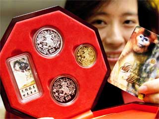 這3枚猴年紀(jì)念幣分別是幣值250新元(下同)金幣,10元銀幣和銅鎳幣。整個(gè)配套售價(jià)1633元。此外,造幣廠也將陳文希的猿猴圖制成大小不一的金、銀章,售價(jià)從28元到248元不等。