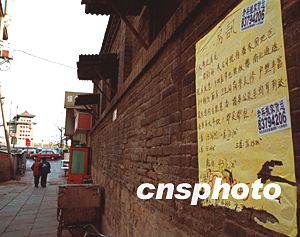 北京著名商業(yè)區(qū)——前門大柵欄地區(qū)十二月底面臨大規(guī)模的修繕改建,租房、售房及搬家公司瞅準(zhǔn)“商機(jī)”,在危房改造集中地做起廣告。作者:張雷