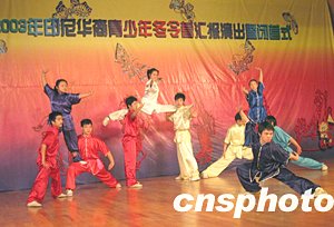 中新社長沙十二月二十九日電(殷敏鴻 鄧霞)二十九日上午,在湖南師大音樂學院演奏廳舉行了印尼華裔青少年中國民族舞蹈及中華武術冬令營匯報演出暨閉營式,伴隨著悠揚的音樂,小營員們身著中國傳統民族服裝,像模像樣地向臺下的中國觀眾表演了八天來在中國學到的民族舞蹈和中國功夫,博得陣陣熱烈掌聲。