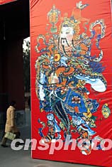 圖:北京地壇巨幅門神貼畫迎春節