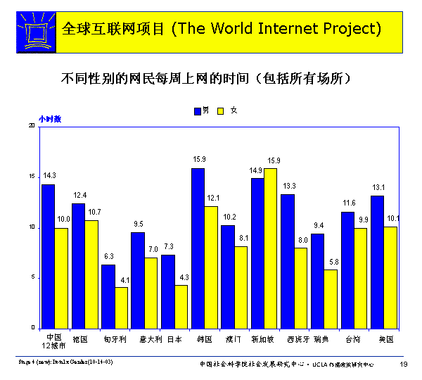 各國用網狀況:不同年齡、性別網民每周上網時間