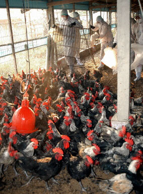臺灣嘉義縣新港鄉(xiāng)爆發(fā)禽流感的養(yǎng)雞場,17日由嘉義縣家畜疾病防治所以水化氯荃迷昏35000只雞,原本預(yù)定今日上午撲殺掩埋,但仍有70%的雞活蹦亂跳,相關(guān)人士指出,將以干冰方式撲殺,預(yù)計(jì)今日完成所有撲殺作業(yè)。