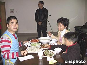 半小時探視結束后,看守所為宋孝濂一家準備了一頓團圓年飯,還特地做了一盤宋愛吃的餃子。懂事的宋睿庭夾起餃子送到爸爸的嘴里,告訴爸爸期末考試他得了班級第一名。宋孝濂這時露出了一絲笑容。
