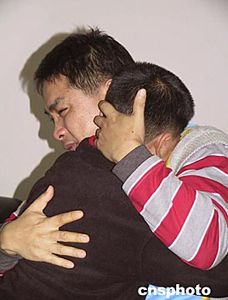 中新社海口一月二十日電 題:特寫:臺諜宋孝濂之子哭泣:爸爸早點回家