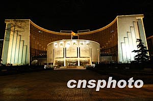 元月三十一日晚,位于北京市西長安街上的中國央行--中國人民銀行辦公樓燈火通明。從二月一日開始,《中國人民銀行法》、《銀行業監督管理法》、《商業銀行法》這三大中國銀行法將正式實施,這三項法律將從法律上確立中央銀行、銀監會的職能劃分,將金融監管和執行貨幣政策分開,從宏觀上廓清中國金融法規體系。中新社記者:任晨鳴