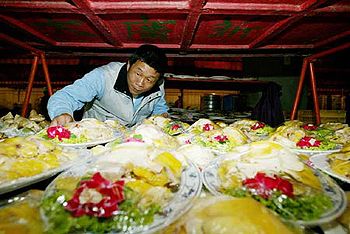 禽流感襲臺灣。民間辦宴時也改變菜單上的兩三道雞肉料理為簡單雞肉拼盤,讓民眾吃的安心。(《中國時報》圖)