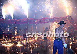 正月十五元宵節,重慶村村點火把,鎮鎮舞龍燈。在“中國龍燈之鄉”銅梁縣傳統的“火龍”通體透亮,金燦燦的火花在空中飛濺,光閃閃的巨龍在夜空中呼嘯起舞,上下翻飛。作者:范卉