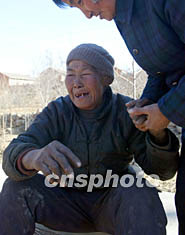 二月七日,北京密云縣一位七十七歲的老人在寒風中痛哭,她的親人在二月五日元宵燈展踩擠事故中不幸遇難。中新社記者:宋吉河