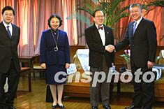 由香港政務司司長曾蔭權率領的政制發展專責小組,二月九日上午與國務院港澳事務辦公室副主任徐澤(右)會面。中新社記者:鄭萍萍