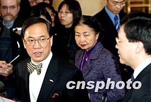 中新網2月10日電 香港政務司長曾蔭權率領的政制發(fā)展專責小組,今早在北京與全國人大法制工作委員會副主任李飛會面。