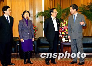 香港政務司司長曾蔭權(右二)、律政司司長梁愛詩(右三)、政制事務局局長林瑞麟(左一)等一行二月十日與全國人大常委會法工委副主任李飛會面。這是政制發展專責小組北京之行的最后一項官方活動。中新社記者:鄭萍萍
