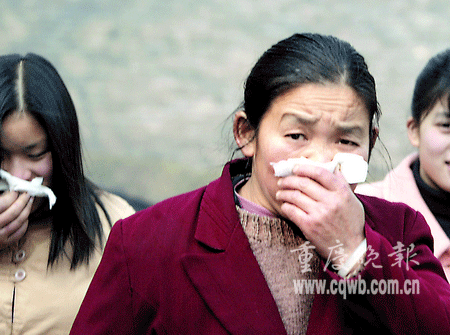 昨日9時許,重慶天原化工總廠發生泄漏事故,據調查小組分析后認為,泄漏的是氯化氫氣體,污染了大水井合作社與雞心石合作社,附近居民先后出現流淚、咳嗽等現象。苗兒石小學500多名師生當時正在上興趣課,9時30分左右,一種霧狀刺鼻氣體開始在全校彌漫開來,并幾乎將全;\罩,“突然來的氣體熏得睜不開眼了。老師忙喊快走快走!”補課的學生緊急疏散。該校三年級一位姓張的小朋友說,跑出教室才發現,全校的同學都捂著鼻子往家跑了。