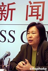 中國銀行行長經濟顧問朱民(右)十六日在中行新聞發布會上表示:中國銀行將在一年內將不良資產降到國際一般商業銀行水平,采用逐筆檢銷不良資產、建立新型戰略體制、強化內控體系和風險管理和人力資源改革四大步驟全面推行股份制改革。中新社記者:廖文靜