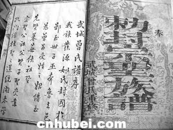 記者日前在荊州區一家名為“荊寶齋”的古玩店看到了裝在刻有“封宗氏圣族譜”舊盒里的這套線裝9冊古書,每冊封面上均印有《武城曾氏重修族譜》字樣,書中除詳盡的文字介紹外,還配有精美的插圖和加蓋的各種印章,其中一長形印章上刻有“忠謀堂總局核修”字樣。據荊州博物館有關專家認定,此套書印刷時間在清末或民國初年。