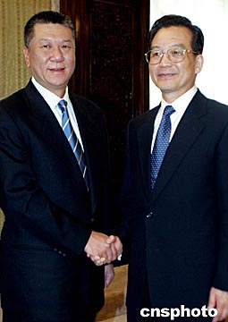 三月七日上午,中國國務院總理溫家寶在北京會見來京列席十屆全國人大二次會議的香港特別行政區行政長官董建華。中新社記者:鄭萍萍