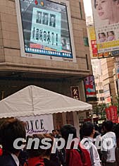 香港立法會議員李柱銘等人三月七日從美國返港,眾多市民高舉標(biāo)語在機場示威抨擊,反對李柱明赴美出席聽證會。圖為在時代廣場眾多市民觀看熒屏播放的有關(guān)新聞。作者:錢興強
