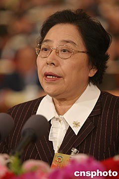 三月八日,江澤慧委員在全國政協十屆二次會議上作《從可持續發展的高度切實加強我國濕地保護工作》的發言。中新社記者:史利