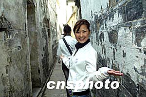 三月十日,參加“古鎮西塘”2004年國際旅游小姐大賽中國區總決賽的三十二名參賽佳麗,在浙江西塘古鎮拍外景,古樸的建筑更映襯出參賽選手的美麗。本次大賽的決賽將在十五日舉行。中新社記者:盛佳鵬