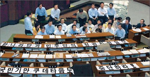 盧武鉉遭國(guó)會(huì)彈劾 韓國(guó)政壇掀波瀾