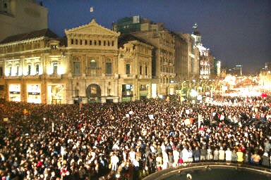 3月12日晚,西班牙上千萬人走上街頭,強烈抗議11日在馬德里發生的系列恐怖爆炸事件。西班牙警方說,游行人數創下了該國歷史最高紀錄。
